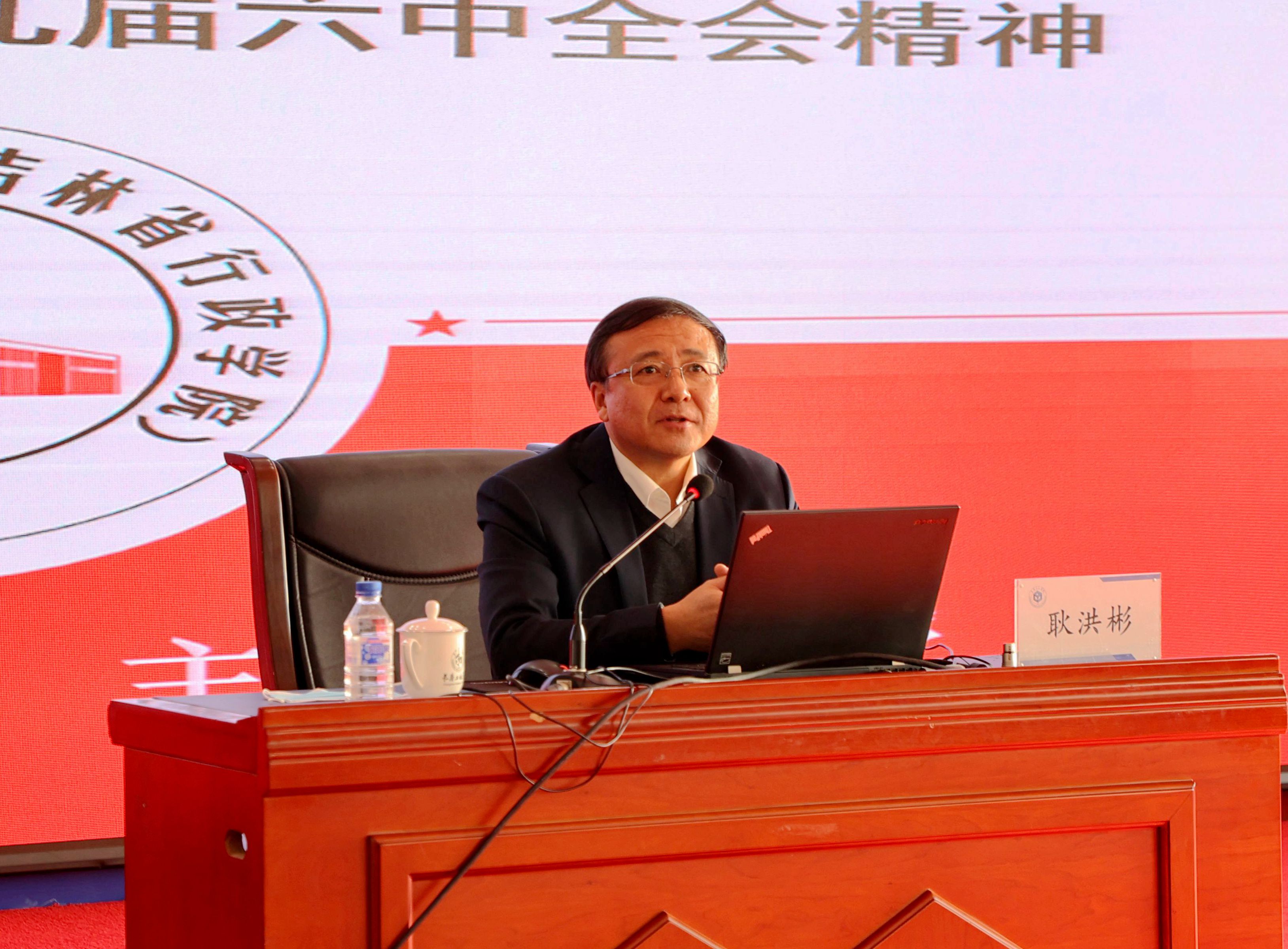 报告会上,耿洪彬教授从深入领会党的十九届六中全会召开的历史背景和重大意义;深入领会党的十九届六中全会《决议》的主要内容和核心要义;把学习贯彻党的十九届六中全会精神作为一项重要政治任务抓紧抓好等三个方面宣讲了党的十九届六中全会精神。耿洪彬教授在报告中指出,站在新的历史起点上,回顾过去,展望未来,全面总结党的百年奋斗重大成就和历史经验特别是改革开放40多年来的重大成就和历史经验,既有客观需要,也具备主观条件。在党的十九届六中全会上通过《中共中央关于党的百年奋斗重大成就和历史经验的决议》是在建党百年历史条件下开启全面建设社会主义现代化国家新征程、在新时代坚持和发展中国特色社会主义的需要;是增强政治意识、大局意识、核心意识、看齐意识,坚定道路自信、理论自信、制度自信、文化自信,做到坚决维护习近平同志党中央的核心、全党的核心地位,坚决维护党中央权威和集中统一领导,确保全党步调一致向前进的需要;是推进党的自我革命、提高全党斗争本领和应对风险挑战能力、永葆党的生机活力、团结带领全国各族人民为实现中华民族伟大复兴的中国梦而继续奋斗的需要。