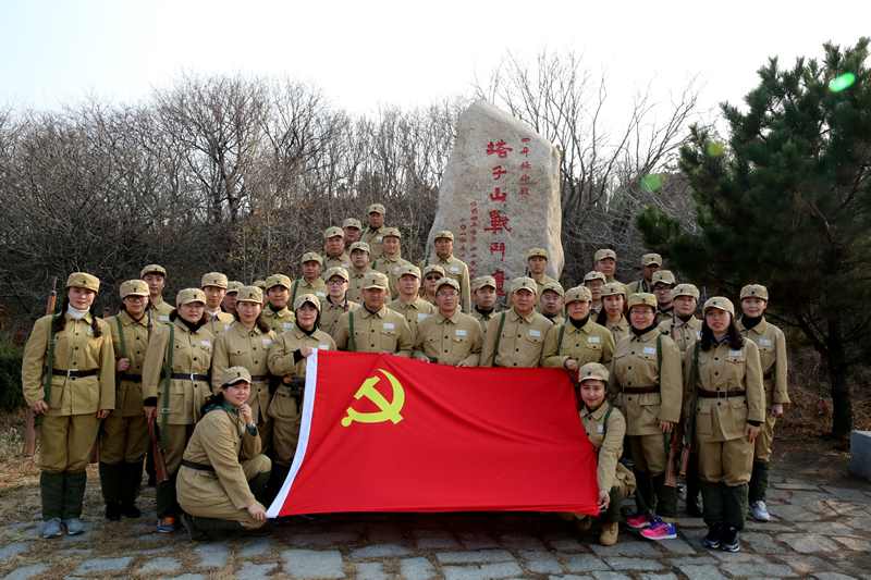 在塔子山战斗遗址,党员干部们扛起步枪,跋涉山顶,亲身体验70多年前塔子山战斗的血雨腥风、艰苦卓绝。昔日战争的硝烟早已散去,而栈道两旁的警示标语时刻提醒着我们要牢记历史,永不忘本。站在塔子山顶俯瞰四周,如今的塔子山风景秀美,漫山的花海寄托着对革命先烈的缅怀。