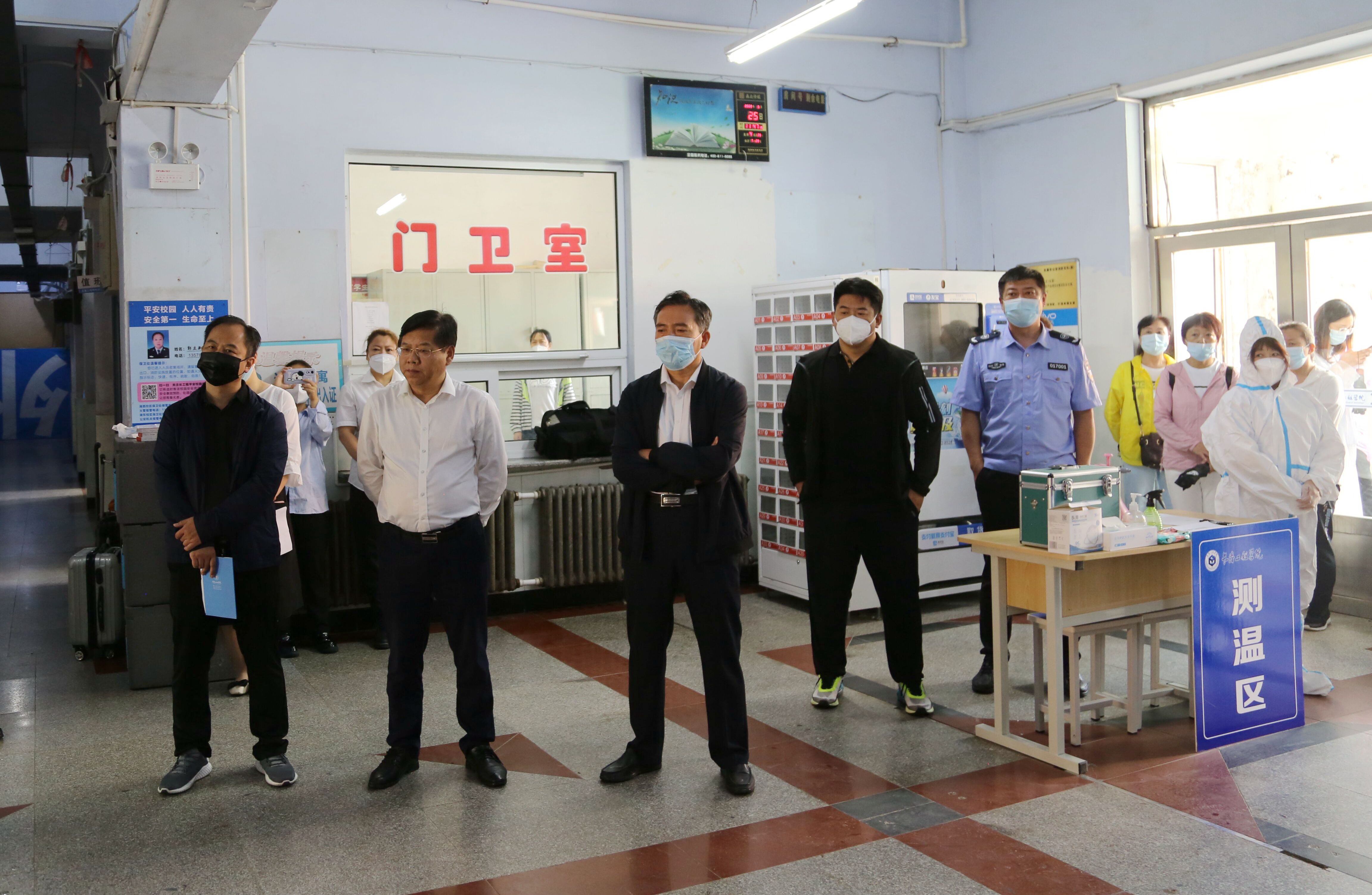BBV网页版领导和来宾全程观摩了演练,并仔细查看了学生开学返校、疫情防控、应急处置等工作准备情况,询问各环节流程的组织细节。