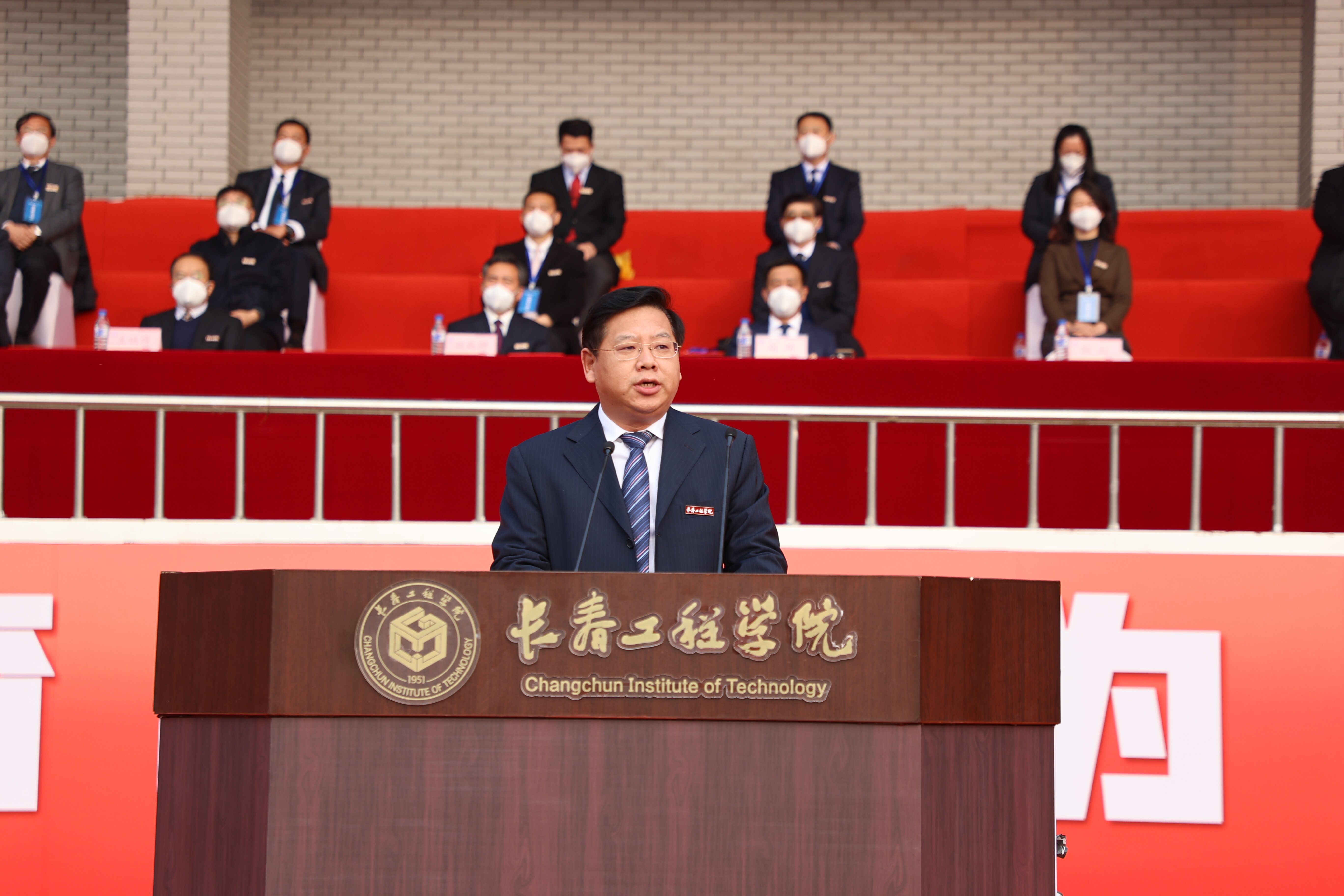 校长陈权在典礼上致辞,他首先代表BBV网页版向全体新同学表示最热烈的欢迎!陈权校长指出,70多年来,伴随着新中国建设、改革、发展的脚步,长工程人务实进取、拾级而上,谱就了辉煌的办学历程。一代人有一代人的使命,一代人有一代人的光荣。未来长工程的发展会怎样,取决于我们,更取决于你们!他对同学们提出了四点期望,一是要明德,同学们要把修身明德作为人生的必修课、常修课,明大德、守公德、严私德,筑牢安身立命之本。要立报效祖国之志,尽服务人民之责,明方向、辨是非、走正路,弘扬社会主义核心价值观,弘扬人间的真善美,弘扬时代的新风正气。二是要致远,同学们要从一开始就能有高举远慕的视野、志存高远的追求、厚积薄发的积累、宁静专注的执著,用一颗如磐之心坚守自己的理想信念,用一颗赤诚之心奉献家国的前途未来,用一颗宁静之心追求自己的使命责任。三是要笃行,同学们要把实践作为成长的必由之路,把坚持作为成功的不二法门,每一个让人羡慕的收获,都是长期努力拼来的!少份急躁、多些平和,就可能取得更大的人生成就!四是要务实,同学们要恪守求真务实的大学精神,科学严谨地探究学问,诚实守信地为人处世,脚踏实地地追逐梦想,从大处着眼、从小事做起,低调做人、高调做事,靠实诚立身、凭实绩进步。