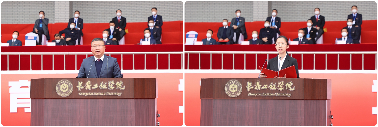 勘查与测绘工程学院吴景华教授,山东东仪光电仪器有限公司、烟台东方分析仪器有限公司董事长赵珍阳,电气与信息工程学院电气2241班学生家长宋刚,计算机技术与工程学院计算1942班学生张瑶琳分别代表全体教师、优秀校友、新生家长、全体在校生进行了发言。