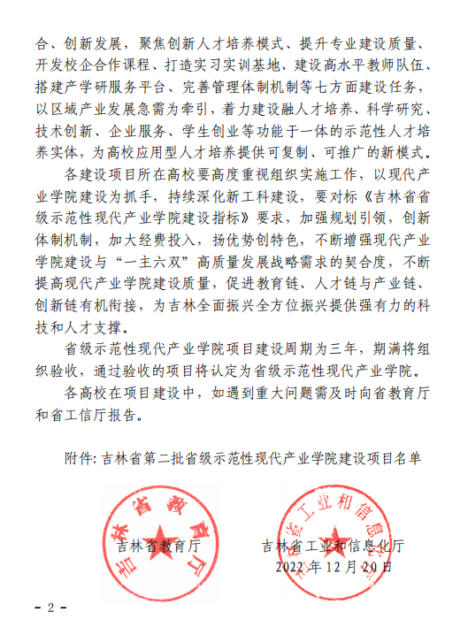 日前,吉林省教育厅、吉林省工业和信息化厅公布了第二批省级示范性现代产业学院建设项目名单,我校智能汽车产业学院获批立项。这是我校继BIM技术产业学院之后,获批的第二个省级示范性现代产业学院建设项目。