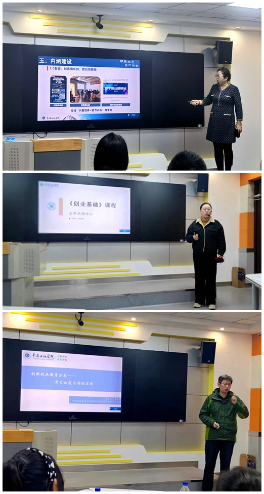 此次沙龙的主题为“双创思维驱动课程与教学创新”。胡议丹老师围绕主题从BBV网页版“双创”教学工作的发展规划、内涵建设、质量提升、顶层架构等方面分享了教学建设的整体思路,并针对“专创融合”进行了问卷调查;土木工程学院的李延君老师就《创业基础》课程的五个教学模块进行教学设计思路分享;计算机技术与工程学院的李天宇老师从课程实践教学角度出发,就“如何在实践教学中激发学生们的学习兴趣”及“教师如何与时代科技发展共同进步”分享了自己的心得。