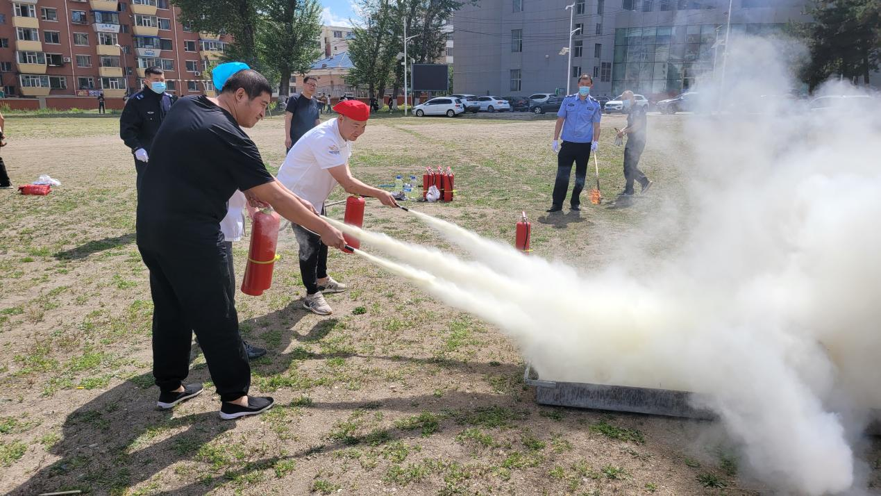 演练现场,保卫处同志就如何在火灾初期情况下自救,灭火器、灭火毯的使用方法等进行了详细讲解,并现场模拟演练了油锅着火扑救及灭火器救火。