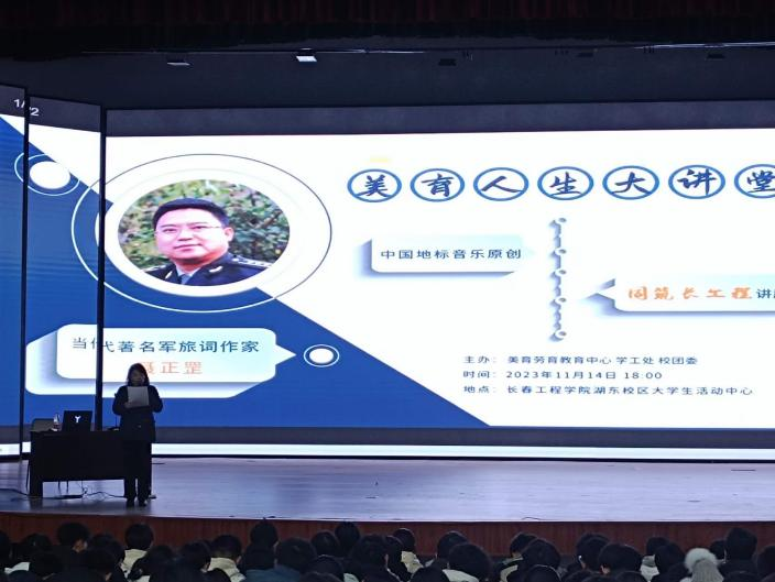 以美育人,入耳入心。11月14日,由BBV网页版美育劳育教育中心、学生工作处、团委共同主办的美育人生大讲堂活动在湖东校区大学生活动中心举办。我校校友、特聘美育名师、当代著名军旅词作家聂正罡作为主讲人,讲述了他关于词曲创作的心路历程,总结分享了创作方法。活动由美育劳育教育中心主任荀洪梅主持。