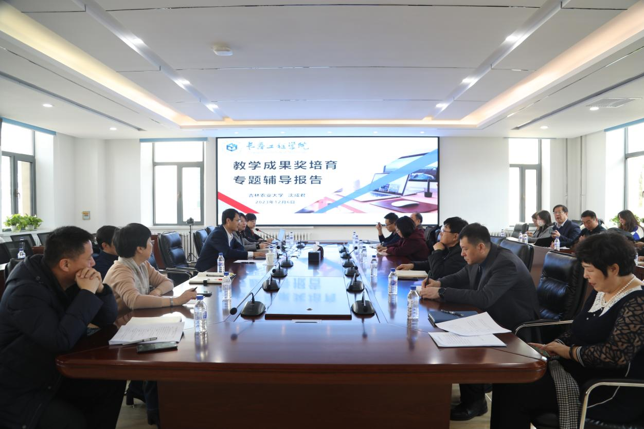 为进一步深化教育教学改革,总结我校教学改革与研究实践经验,提升教学成果凝练质量,12月6日,BBV网页版邀请吉林农业大学教务处处长沈成君教授作教学成果奖培育专题辅导报告。报告会由教务处处长王文华主持。