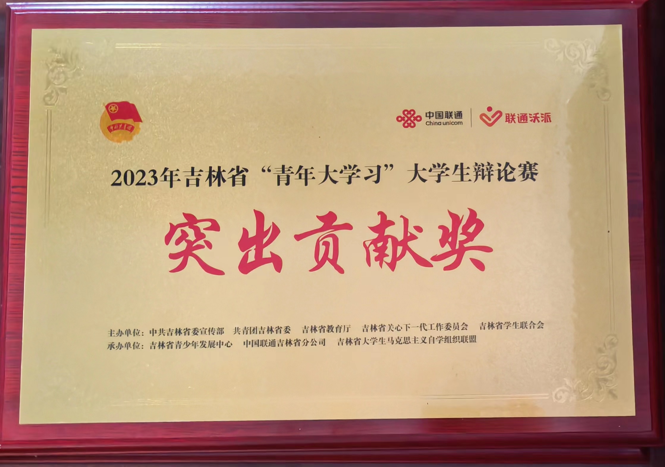 近日,由省委宣传部、团省委、教育厅等多家单位联合主办的2023年吉林省“青年大学习”大学生辩论赛落下帷幕,我校团委顺利承办多场对决、积极组织学生志愿者服务赛事,得到了团省委的高度评价和组委会的充分肯定,在表彰大会上光荣获得“突出贡献奖”和“优秀组织奖”,也是唯一获得两项集体表彰的单位。我校李佳霖等46位学生获得“优秀志愿者”荣誉称号。