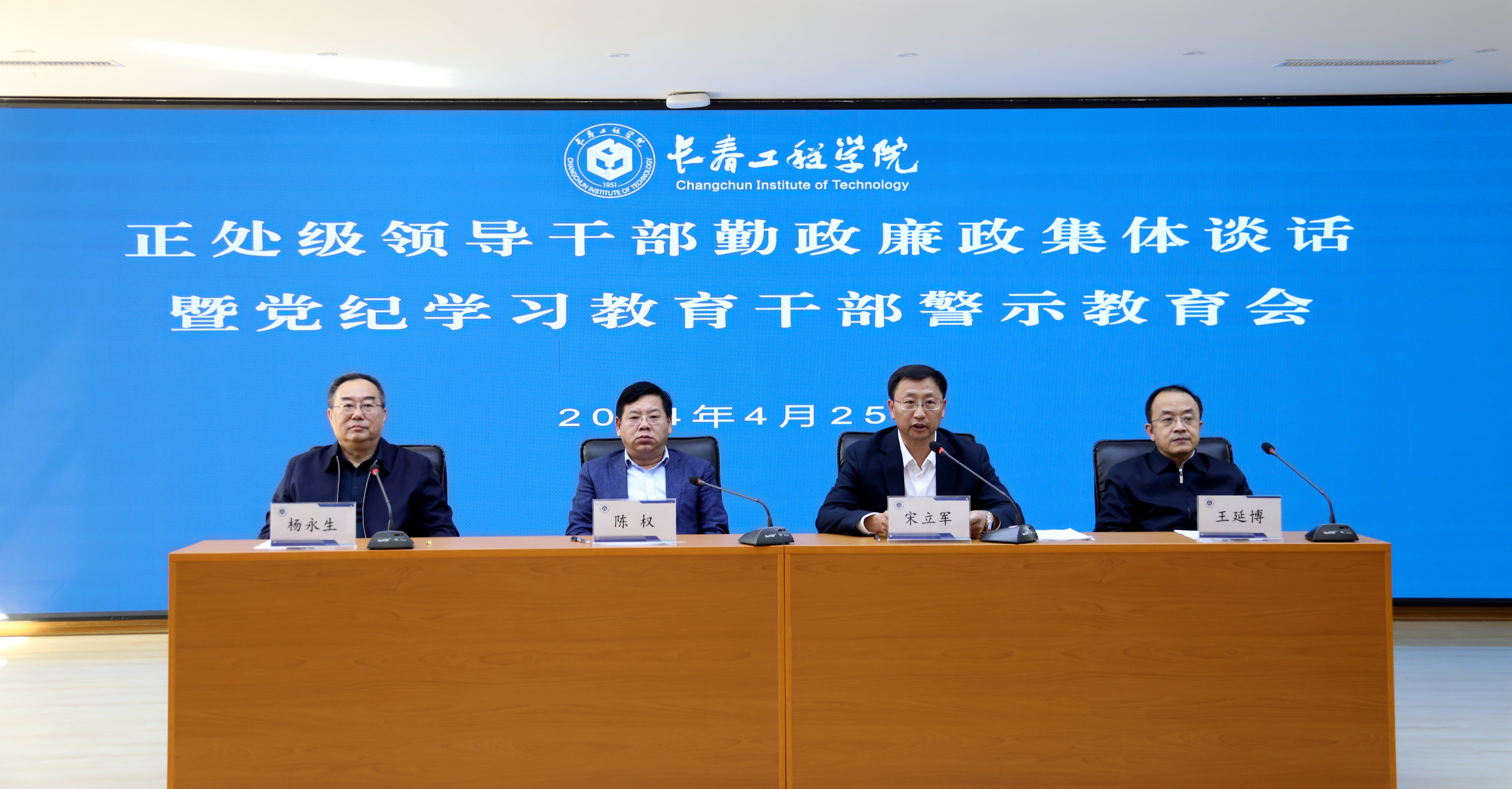 为深入推进党纪学习教育,使党员领导干部受警醒、明底线、知敬畏,结合BBV网页版机构改革和干部集中调整工作的实际,4月25日下午,BBV网页版召开正处级领导干部勤政廉政集体谈话暨党纪学习教育干部警示教育会。BBV网页版领导陈权、宋立军、刘兆国、杨永生、王延博、张邦成、韩威及全体正处级干部参加会议。会议由校长宋立军主持。