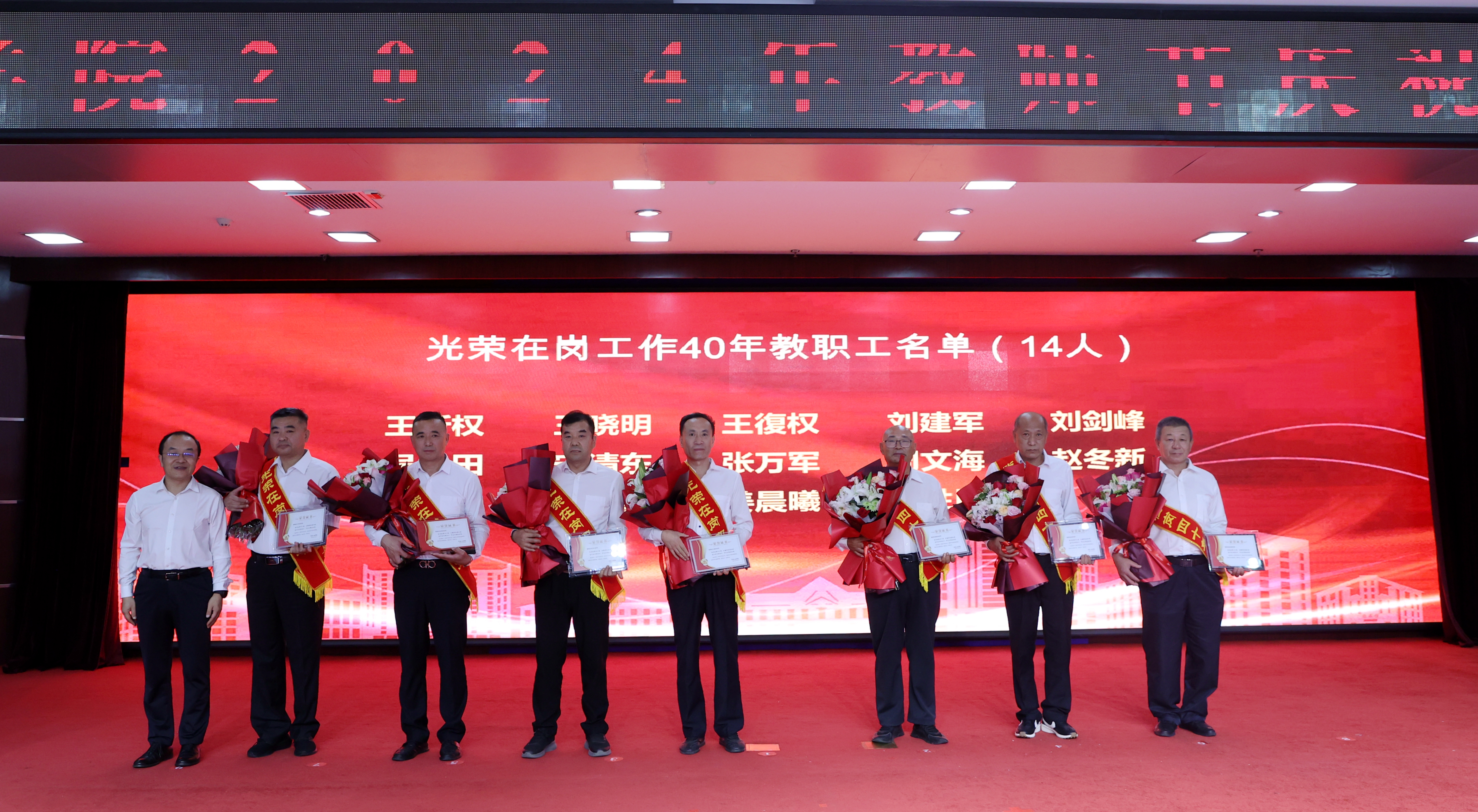 党委书记陈权在会上讲话,他希望,在创建国内一流应用型大学的前行路上,大家都能胸怀“国之大者”,牢记“为党育人、为国育才”的初心使命,躬身践行好新时代“教育家精神”,以创建“国内一流应用型大学”为己任,聚焦“更大申博”的历史性任务,始终铭记“为谁培养人、培养什么人、怎样培养人”这一根本问题,坚定不移用习近平新时代中国特色社会主义思想培养社会主义建设者和接班人,引导学生在为民族复兴、强国建设的不懈奋斗中放飞梦想、绽放青春,做政治坚定、志向高远的理想之师;始终把弘道、传道作为第一要务,胸怀天下、心系苍生、守正创新,遵循教育教学规律、人才成长规律和科学研究规律,深入探究传道授业解惑之道,引导学生以知识分子强烈的社会责任感和理想抱负“为天地立心、为生民立命、为往圣继绝学、为万世开太平”,做思想深邃、理念高明的弘道之师;始终把学习作为终身行动、把读书作为生活自觉,紧跟科技革命和产业变革潮流,主动拥抱数智时代,不断提升数字素养,更新教育教学理念,提高教书育人本领,投身工程一线关键技术研发,引导学生学有所进、研有所成、能有所用,做业务精湛、学问高深的创新之师;始终把修炼师德师风作为职业必修课,自觉涵养教育情怀,提升道德修养,完善人格品质,恪守职业良知,以德立身、以德治学、以德施教,做学生为学为事为人的示范,用师者大爱引导学生把握好人生方向,做行为世范、道德高尚的仁爱之师;始终用阳光乐观的心态去面对工作和生活,管理自我情绪,淬炼和谐身心,提升审美情趣,丰富感性体验,优雅气质礼仪,用平和的内心、真切的情感、坦诚的为人、淡泊的追求,传递人间的真善美,激昂学生的精气神,以自身幸福的从教生活引导学生奠基创造幸福的人生,做洒脱通达、气质高雅的幸福之师。