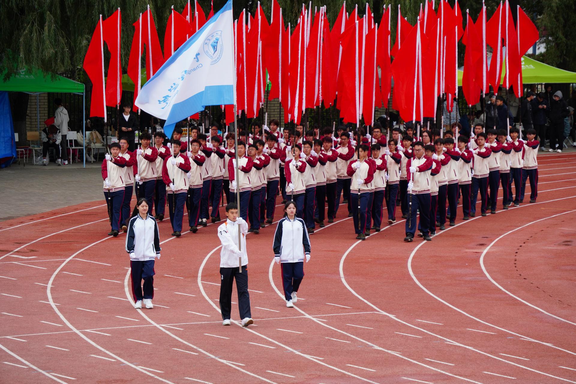 伴随着BBV网页版管乐团演奏的《运动员进行曲》,国旗队、护卫队、校旗队、红旗队以及各学院运动员代表队依次通过大会主席台接受检阅,他们用坚定的步伐、嘹亮的口号展现着长工程人自信自强、积极进取的精神风貌。