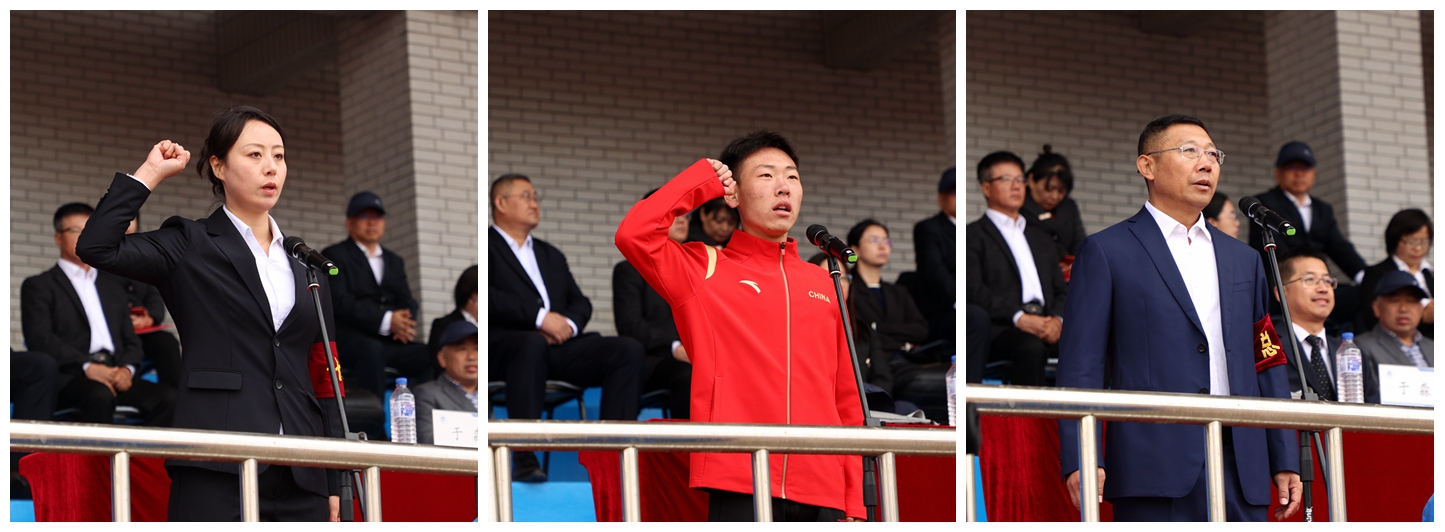 开幕式上,体育教研部教师李迪玲代表全体裁判员宣誓;土木工程学院学生李俊霖代表全体运动员宣誓。