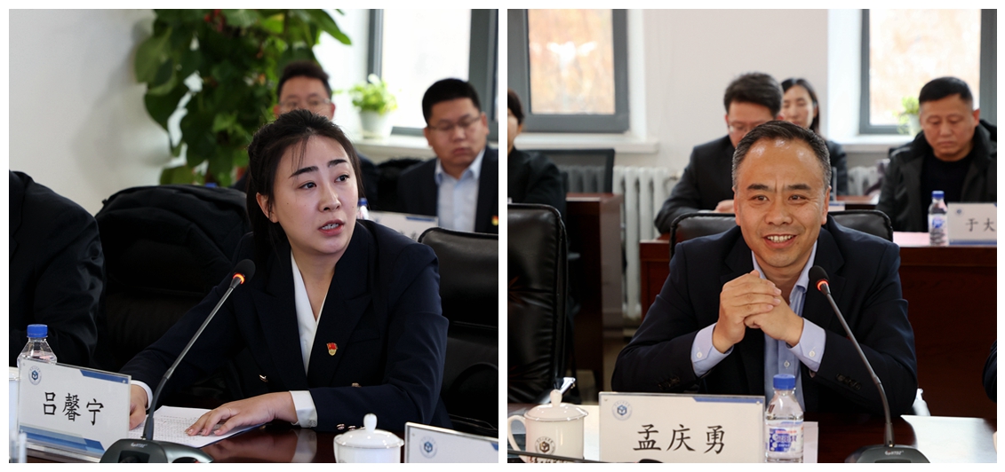 吉林省水务投资集团有限公司党群工作部副部长吕馨宁与BBV网页版党委常委、组织部部长孟庆勇分别汇报了企业与BBV网页版的党建工作情况;吉林省水务投资集团有限公司水工局总工程师安京云与BBV网页版水利工程学院党委书记高金花分别汇报了共建实验室与科技创新情况。