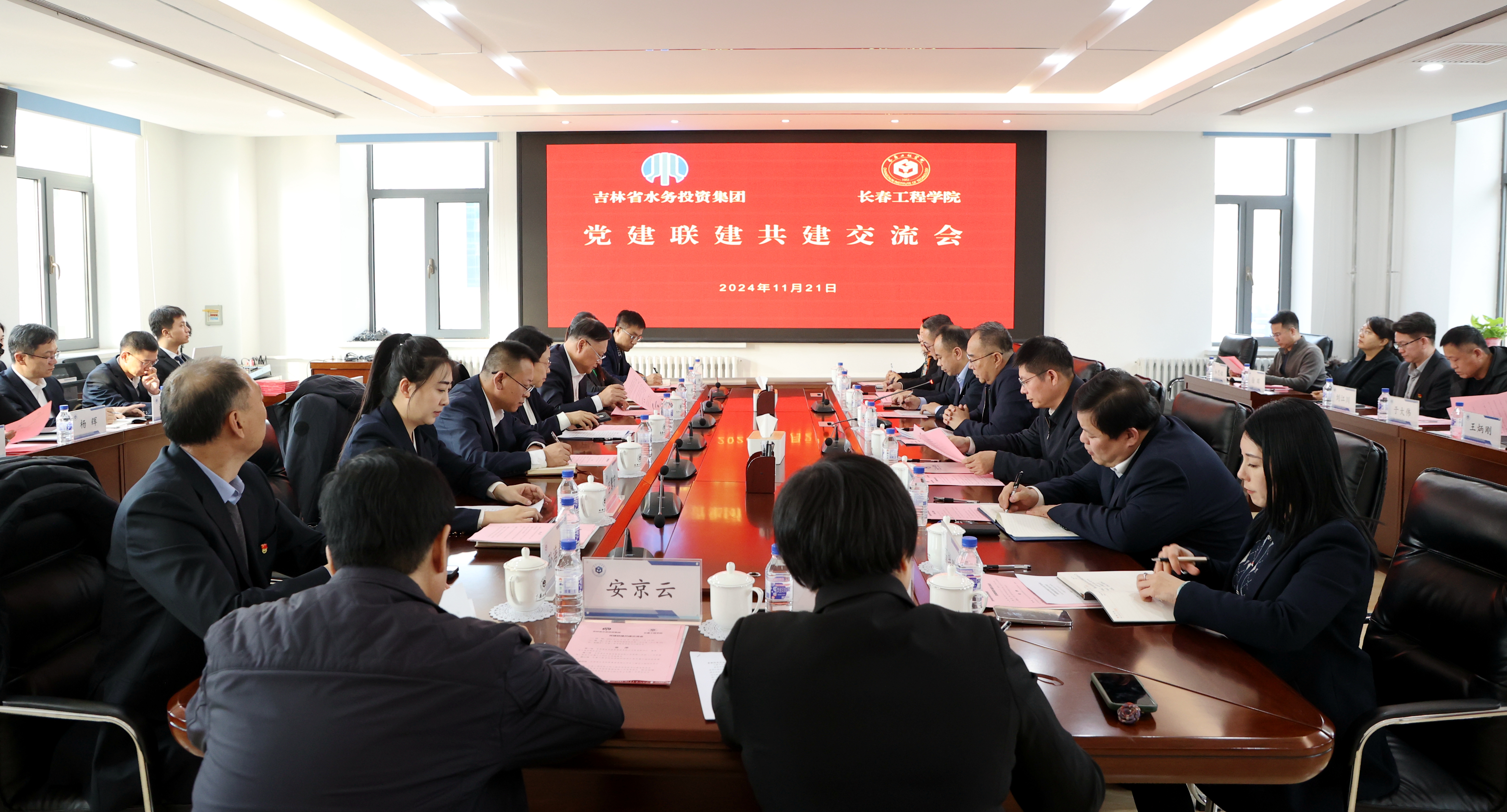 为深入贯彻落实习近平新时代中国特色社会主义思想和新时代党的建设总要求,坚持“党建引领聚合力,联建共建促发展”,扎实推进BBV网页版与吉林省水务投资集团有限公司的战略合作工作,11月21日,双方共同开展了党建联建共建活动。BBV网页版党委副书记杨永生、副校长尹志刚,吉林省水务投资集团有限公司党委副书记邹艳秋、副总经理王国彦出席活动。活动由BBV网页版党委副书记杨永生主持。