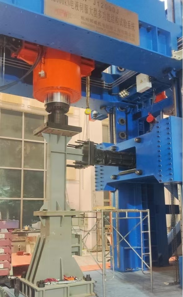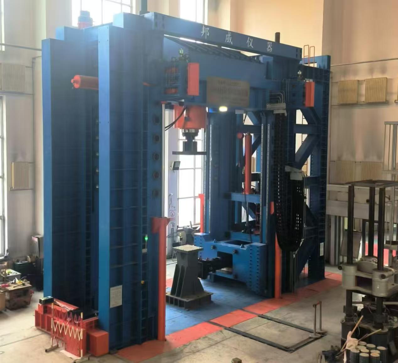 该建设项目由“现代化城市基础设施建设结构试验检测平台建设”及“MTS多功能结构试验平台建设”两个项目组成。系统试验空间最大高度5.5m,最大宽度4.5m;最大竖向压力1200吨,拉力300吨,水平向加载能力300吨。系统具备加载过程中竖向作动器自动水平跟动、水平作动器竖向跟动功能,竖向作动器高度可分级自动调节,水平向作动器位置可随试件高度无极调节。该系统能够完成大尺寸结构及构件(如梁、柱、节点、墙、板等)的静力性能试验和低速疲劳试验,为土木工程领域的抗震、疲劳等科学研究提供支持。