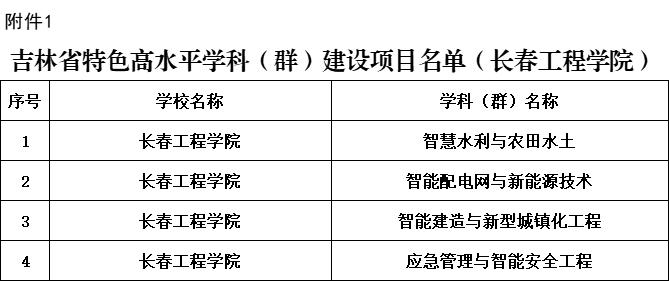 近日,吉林省教育厅公布《关于公布吉林省特色高水平学科(群)、专业(群)建设项目名单的通知》,我校智慧水利与农田水土、智能配电网与新能源技术、智能建造与新型城镇化工程、应急管理与智能安全工程4个学科(群)成功获批吉林省特色高水平学科(群)建设项目;新能源与智能电网、农业与水利、绿色建筑与智能建造3个专业(群)成功获批吉林省特色高水平专业(群)建设项目。