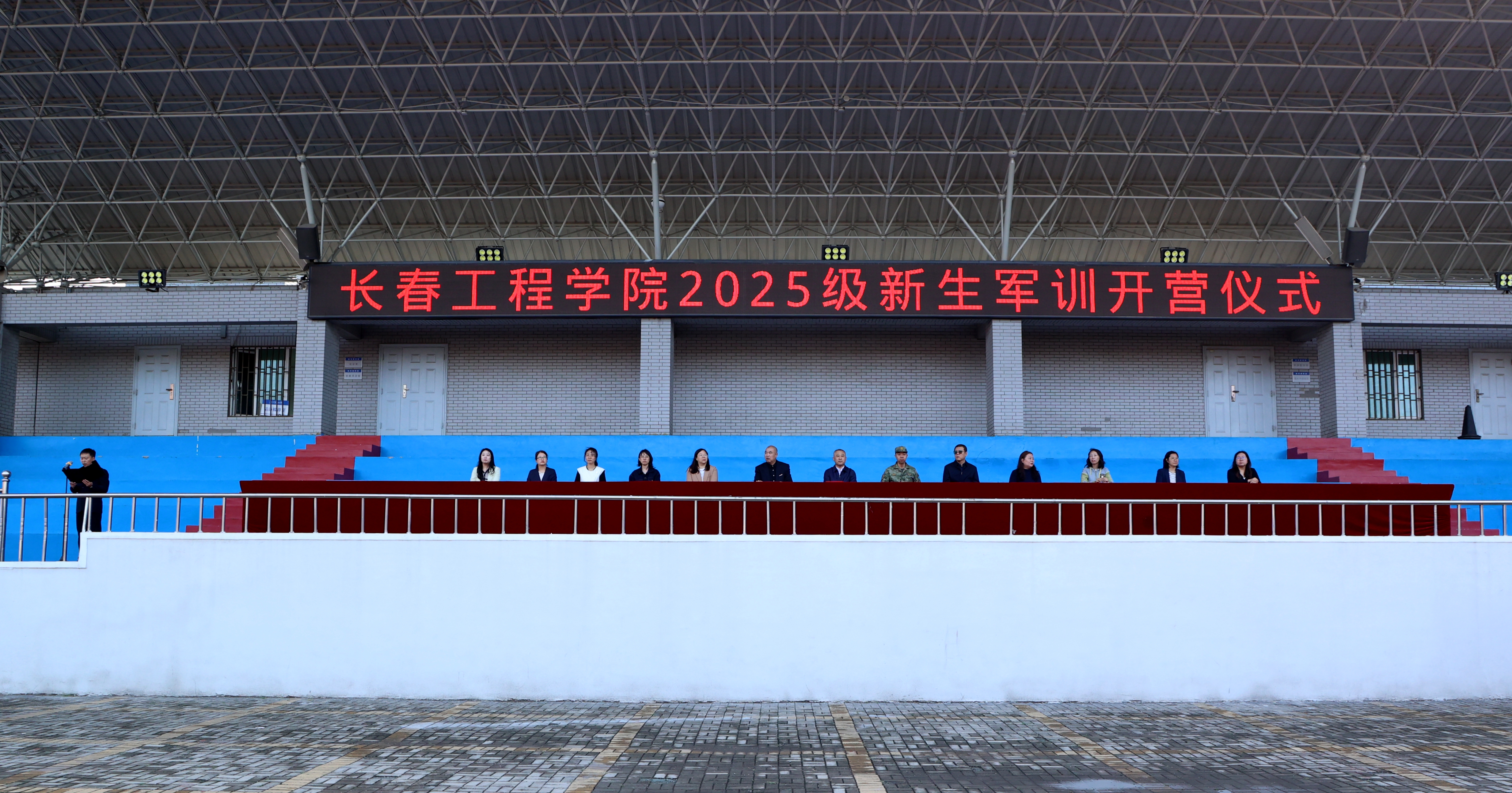 BBV网页版学生工作处、体育教研部相关负责人,各学院党委副书记和辅导员,全体承训教官及2025级全体参训学生参加军训开营仪式。