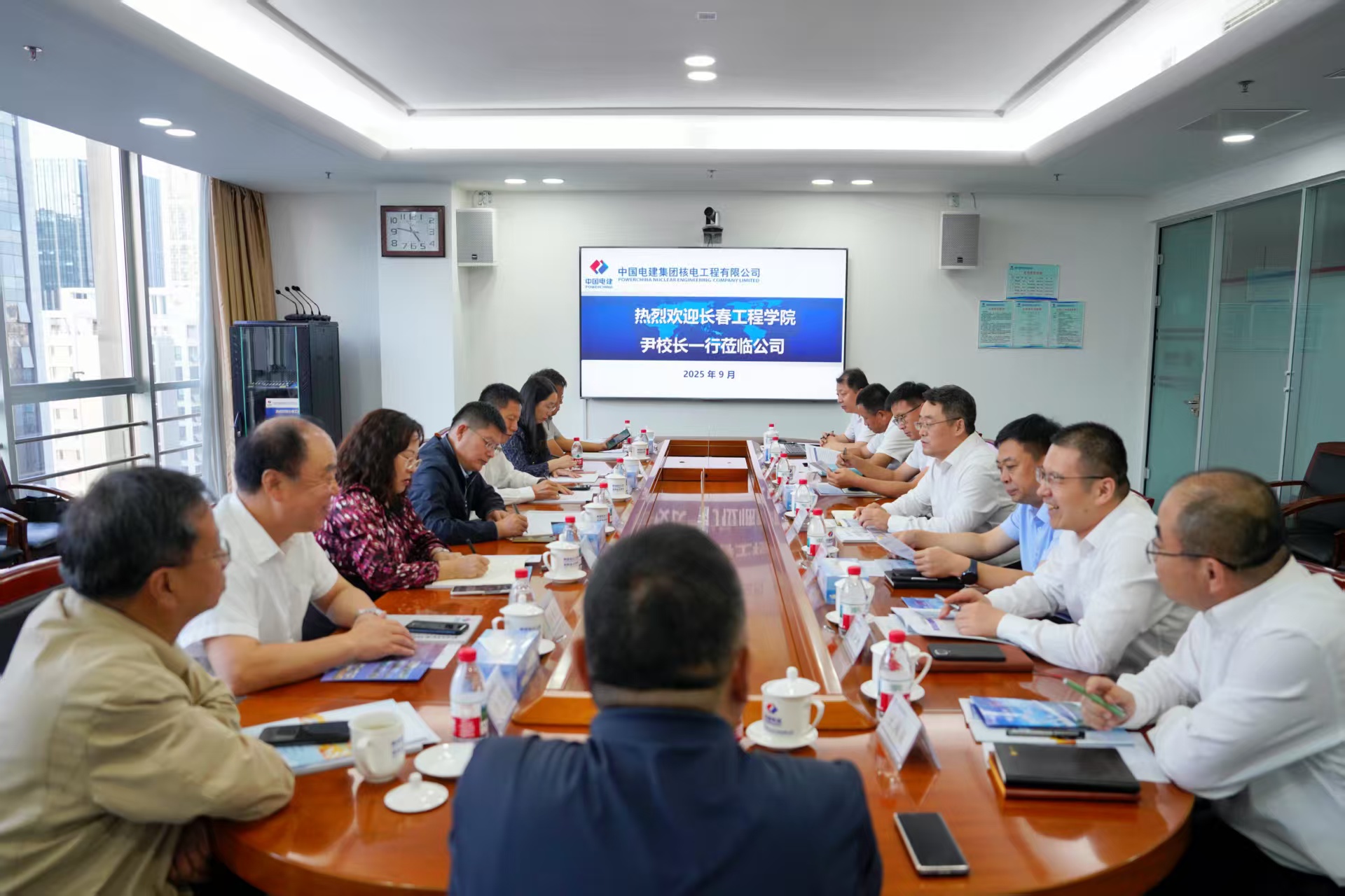 在中电建核电公司调研期间,副总经理王学武带领参观了企业展馆,他从企业战略升级、公司发展愿景及人才储备计划等方面向校方进行了重点介绍。