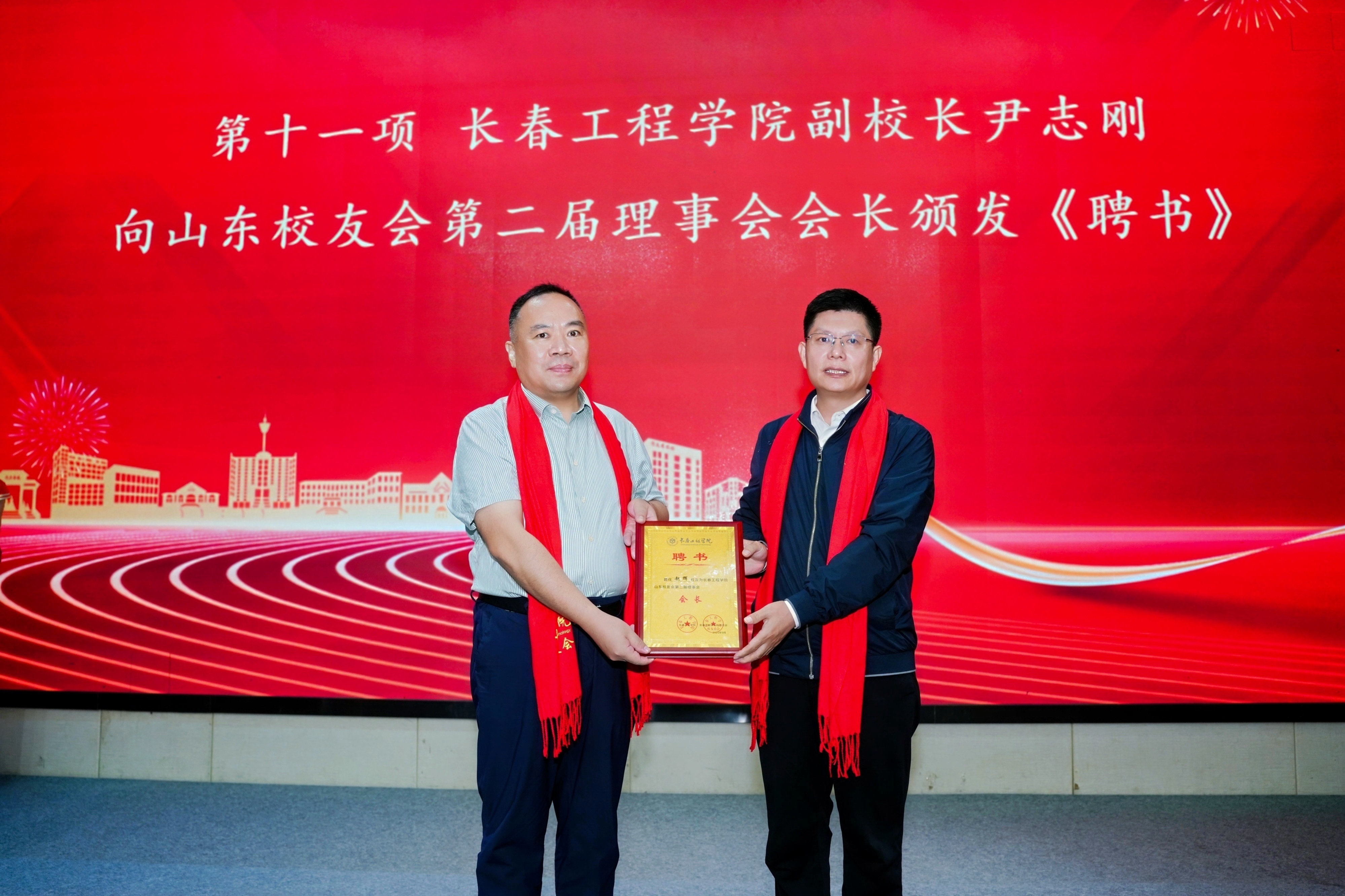 尹志刚副校长向新当选的赵辉会长颁发了聘书,并在大会上致辞。他代表母校和校友总会祝贺山东校友会换届大会顺利举行,肯定了山东校友会第一届理事会对母校的建设和发展作出的积极贡献,对校友们长期以来对母校的关心和大力支持表示衷心的感谢,并对山东校友会提出了三点殷切希望。希望校友会能“扎扎实实”打好基础,成为更有力的“组织者”;希望校友会能“勤勤恳恳”牵线搭桥,成为更高效的“连接者”;希望校友会能“轰轰烈烈”建功立业,成为更有为的“贡献者”。