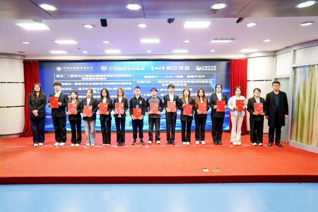 10月26日下午,决赛颁奖典礼在我校第二报告厅举行。中国志愿服务联合会理事、中志联理论研究工作委员会专家委员、长春市志愿服务联合会会长姚丽致辞,她肯定赛事成果、感谢支持单位与工作人员,阐述了赛事旨在融合志愿精神与创新精神的核心定位,并表示联合会将与高校深化合作、搭建平台,助力项目落地与吉林振兴。