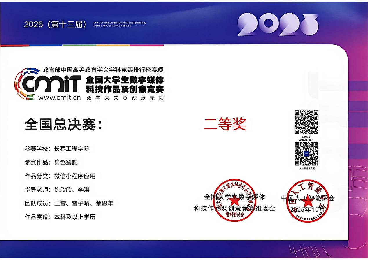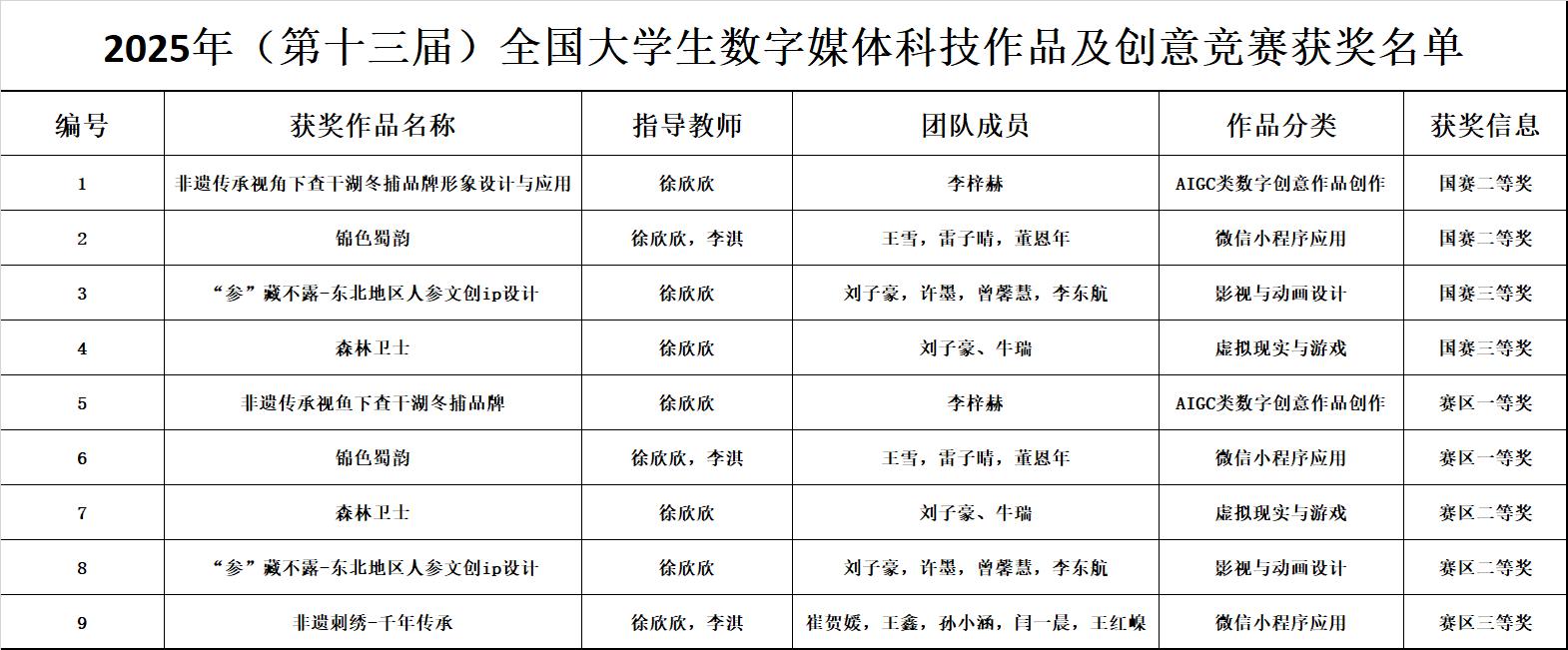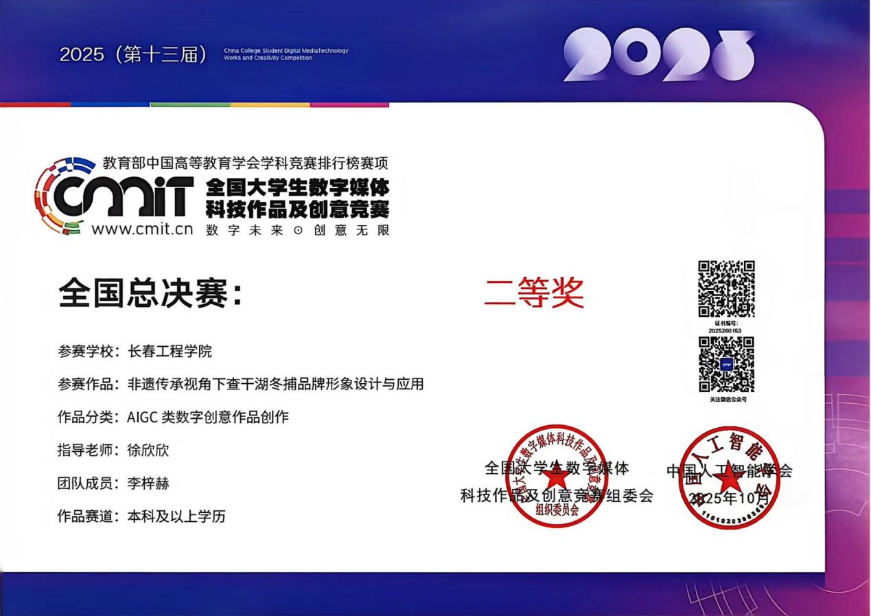 10月26日,2025年全国大学生数字媒体科技作品及创意竞赛全国总决赛落下帷幕。我校艺术设计学院师生团队获得全国二等奖2项、三等奖2项,并在省赛阶段斩获省级一等奖2项、二等奖2项、三等奖1项。