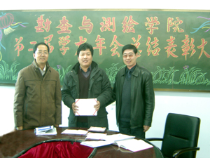 11月28日,勘查与测绘学院召开了第二届学术年会表彰大会暨第三届学术年会工作布置会。勘测学院副院长王仲锋教授代表学院对第二届学术年会进行了总结,并对第三届年会的论文征集进行了布置。勘查与测绘学院总支书记吴景华和院长王志华教授向第二届学术年会论文的作者颁发了荣誉证书。