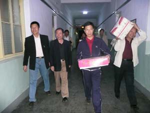 10月6日,产业系统由总支书记徐惠基和副书记张利带队,印刷厂厂长张继承,设计院副院长李洪学、危永江,培训中心经理杨守志等企业领导组成了慰问团,在大雨中为一线教师送温暖