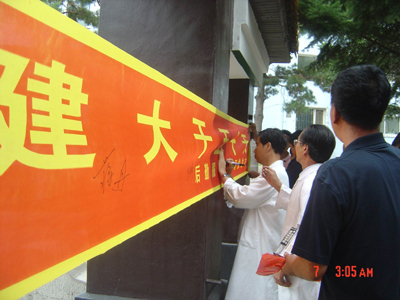 9月7日下午15点,后勤服务总公司党总支在校园的草坪上组织召开了迎国评倒计50天现场动员大会,会上党总支书记洪文峰同志做了动员讲话,强调在“迎评创建”进入冲刺阶段,全体党员要率先垂范,爱岗敬业,服务教学,服务评建,为国评的到来做好后勤服务保障工作,展现后勤服务的亮点。会后举行了全体党员签字仪式,并组织全体党员为校园的草坪锄杂草。
