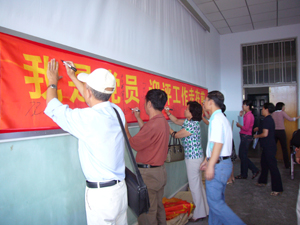9月4日下午2:10分,在院会议室召开全体党员大会,会上,总支书记侯庆国教授传达了BBV网页版有关文件,随后全院党员在“我是党员迎评工作走在前” 条幅上庄重的签字,决心以严谨、科学、务实的工作作风迎接国评的到来,为在国评当中取得优异的成绩和BBV网页版的发展建设作出积极的贡献。