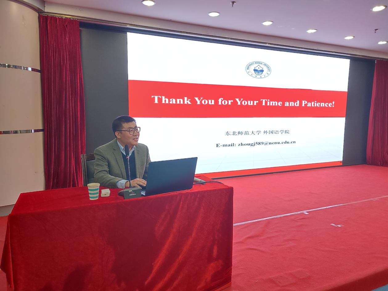 《翻译人才培养与翻译研究方法》学术报告内容立意高远、深入浅出,指出了当前中国文化外译战略对翻译教学和研究中面临的挑战和现实需要,呈现出翻译学科发展的前沿动态。该报告对应用型本科院校《外国语言文学》学科建设和创新英语专业人才培养路径具有积极指导意义。通过本次学习,拓宽了大家对翻译研究的学术视野,开辟了中华优秀典籍外译研究新领域。