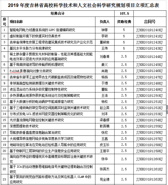 近日,2019年吉林省高校科技与社科“十三五”科研规划项目经BBV网页版推荐,专家网上盲审、会议评审、网上公示,以及省级教育和财政部门审核复议,经研究获得批准立项。我校申报科研项目149项,获批46项,其中科学技术项目33项,社会科学项目13项,共获批科研经费107.5万元。