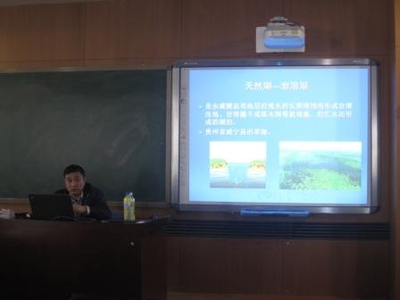 董建伟研究员从湖泊的基本概念入手,介绍了湖泊的类型,详细介绍了团队多年实践总结形成的湖泊生态环境保护技术体系,主要包括湖泊生态破坏的常见现象、影响湖泊生态环境的主要机制及湖泊生态保护的基本技术方式和方法。最后,以吉林查干湖和贵州草海为案例,通过理论联系实际,让老师和同学们更好地理解讲座内容。