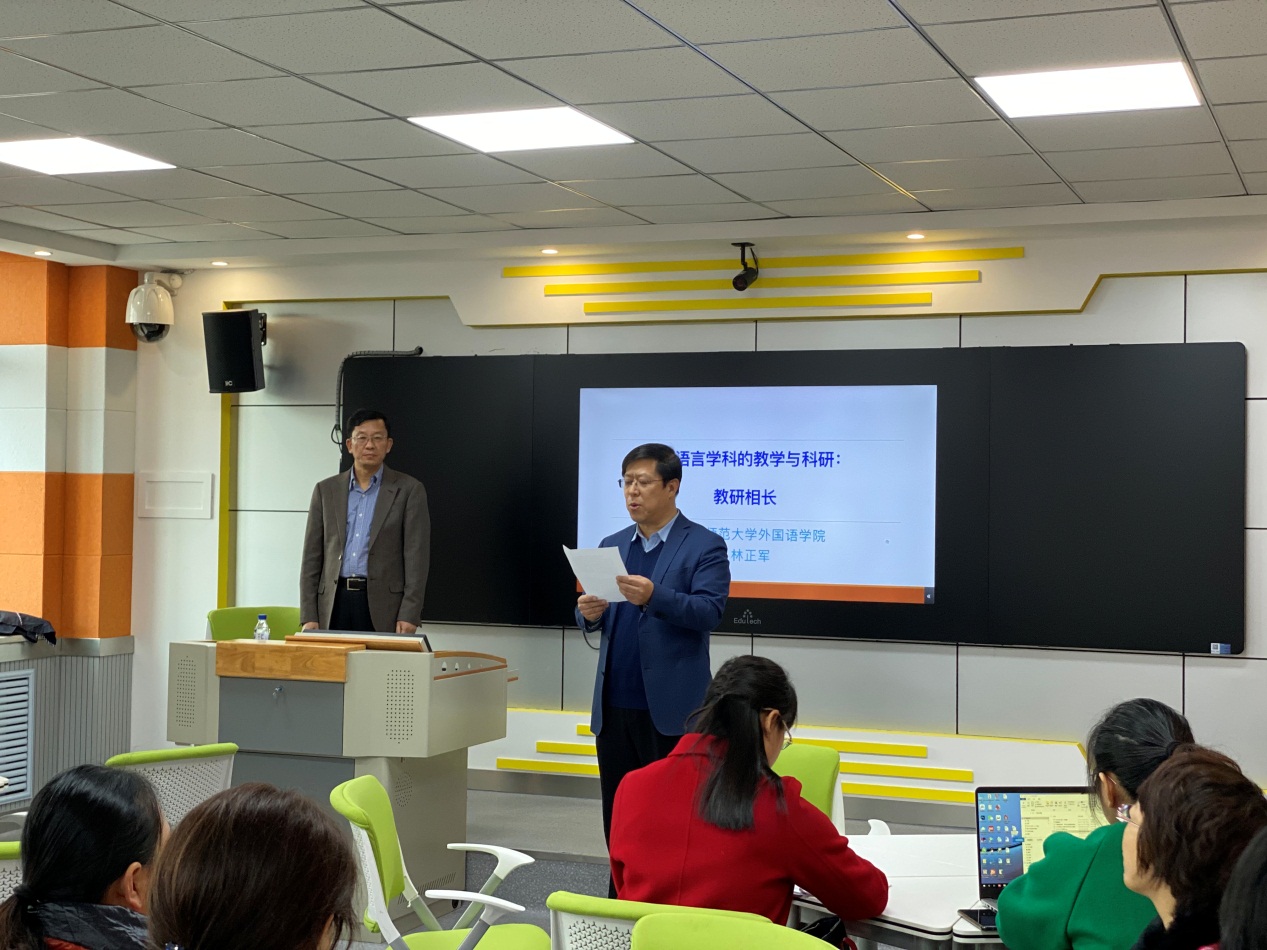 为了促进学科、专业和课程的一体化建设,提高教师科研能力和教学水平,11月6日下午,外国语学院邀请东北师范大学外国语学院院长、博士生导师林正军教授为我院师生作了题为“英语语言学科的教学与科研——教研相长”的学术讲座。
