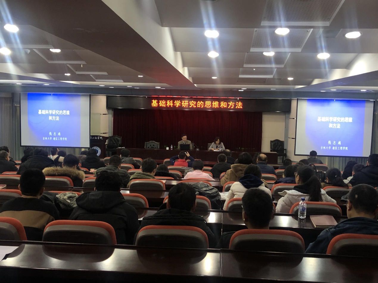 11月28日上午,科学研究处邀请吉林大学通信工程学院钱志鸿教授作了题为《基础科学研究的思维和方法》的学术报告。报告会由孟祥萍副校长主持,BBV网页版150余名科研教师和博士参加了此次报告会,报告会在第七教学楼第一报告厅举行。