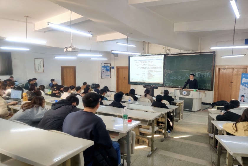 报告会上,浩飞龙博士从大数据背景下的学科发展,互联网大数据类型及分析思路,基于互联网大数据的规划研究等三个方面详细讲解了大数据的概念在城乡规划领域中的应用。此外,他还指出用大数据信息反映城市发展方向,并与环境问题对应进行适配规划,从而由数据信息反映城市的综合信息是信息时代的发展趋势,也是新时代背景下城乡规划的转型工具。浩飞龙博士的报告将理论与实际相结合,深入浅出,循循善诱,会场气氛热烈。会后,浩飞龙博士与城乡规划专业的教师进行了教科研及学科建设方面的交流。