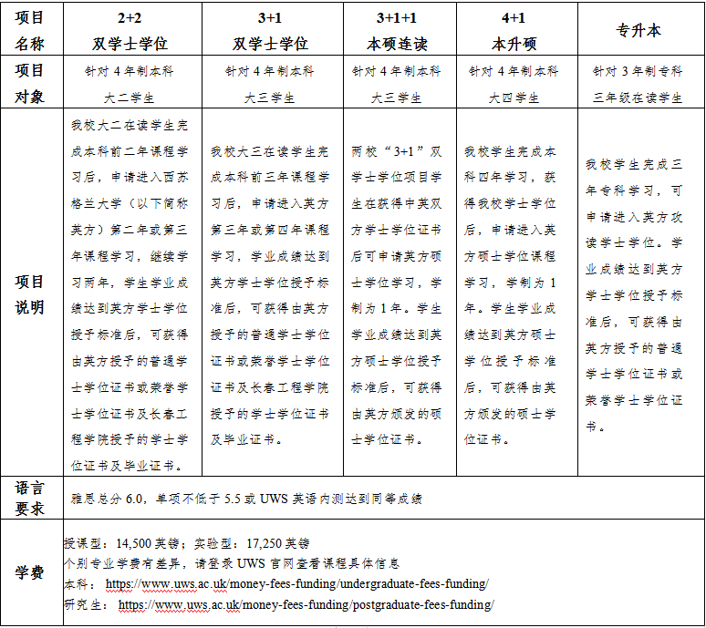 1.西苏格兰大学收费项目: