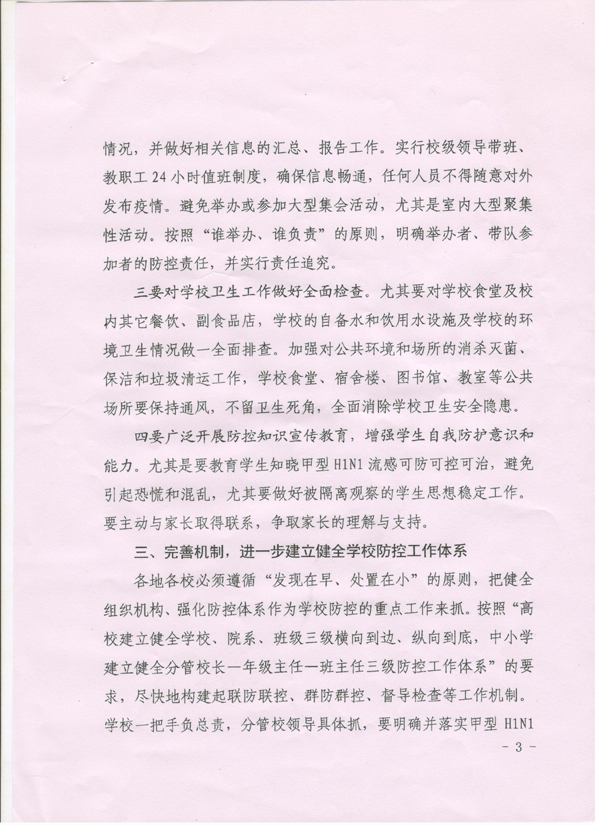 关于学习贯彻省教育厅卢连大厅长在全省甲型H1N1流感防控工作会议上强调的三点意见的通知