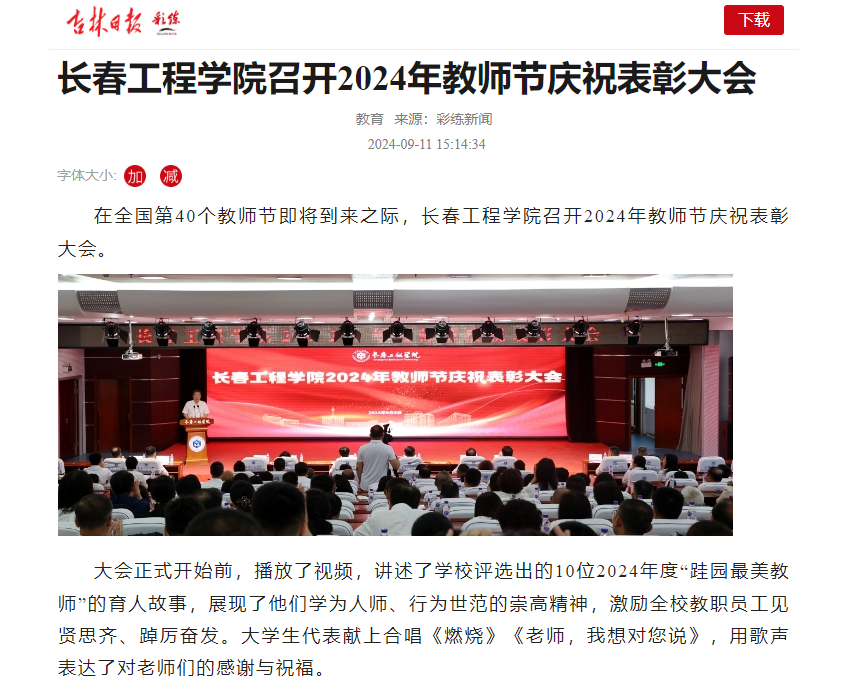 【吉林日报】BBV网页版召开2024年教师节庆祝表彰大会