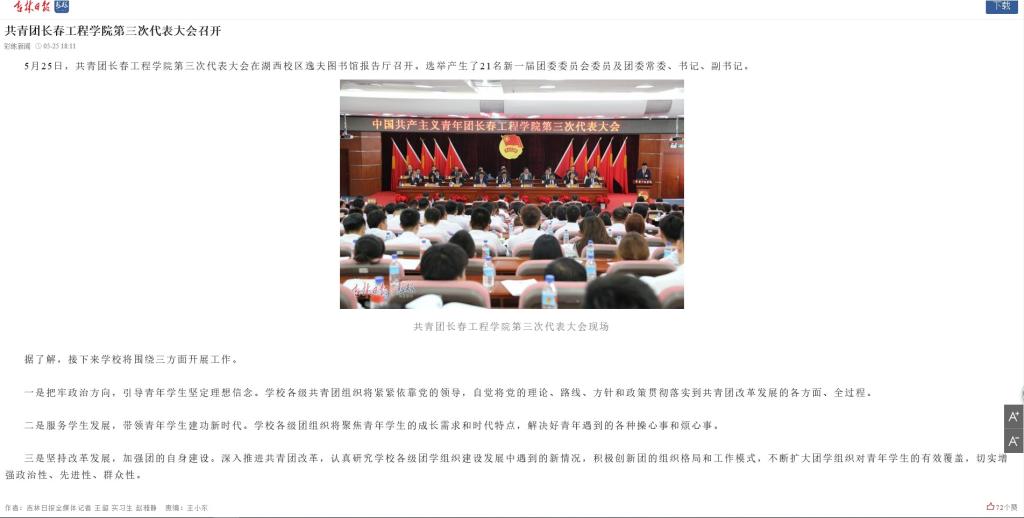 【吉林日报】共青团BBV网页版第三次代表大会召开